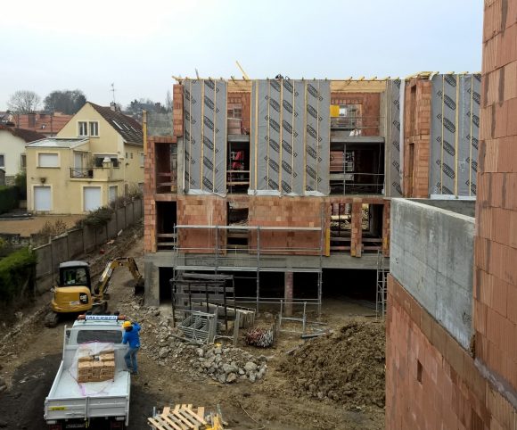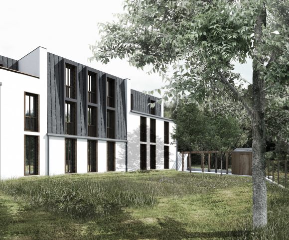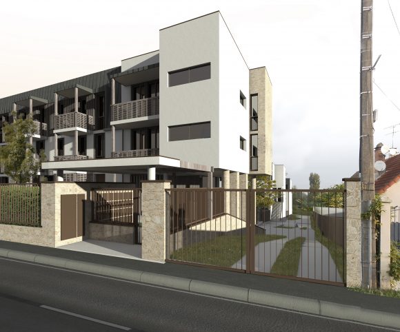 Le principe urbain ayant présidé à notre proposition est basé sur des principes simples: retrouver la pente originelle, être dans des volumétries qu’accepte l’environnement proche constitué essentiellement de pavillons en retrait de la rue, fractionner les constructions et ainsi conserver et accentuer le caractère paysager de la parcelle, occuper la totalité de la parcelle en proposant des lieux clairement identifiés et appropriables, jardins privés et collectifs. A la pente, nous répondons en posant trois bâtiments orientés nord-est/sud-ouest, que nous avons dessinés et prévus comme des maisons de ville: la maison haute, la maison du milieu et la maison basse.