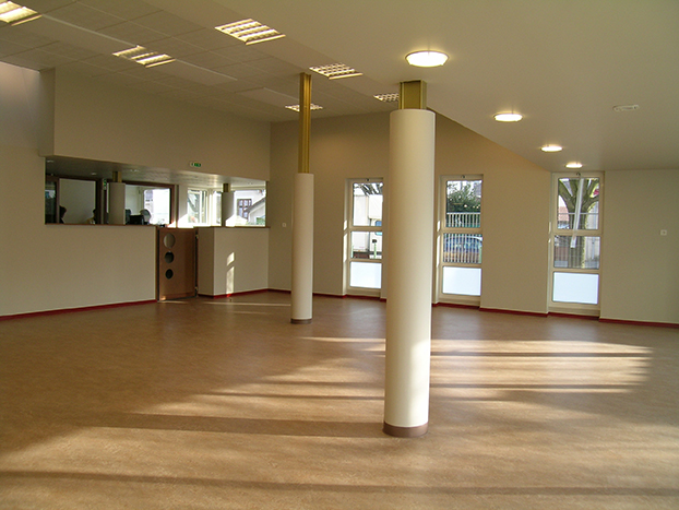 C’est en profitant des grandes hauteurs et du caractère atypique de la volumétrie de l’édifice, que nous avons pu agencer des volumes simples, flexibles et lumineux. La programmation originale de cet équipement a pu permettre la mutualisation de lieux spécifiques (jeux d’eaux, salle de motricité). Cette intervention a été l’occasion d’une nouvelle organisation du stationnement et la mise en place d’accès piétons différenciés au grand ensemble.