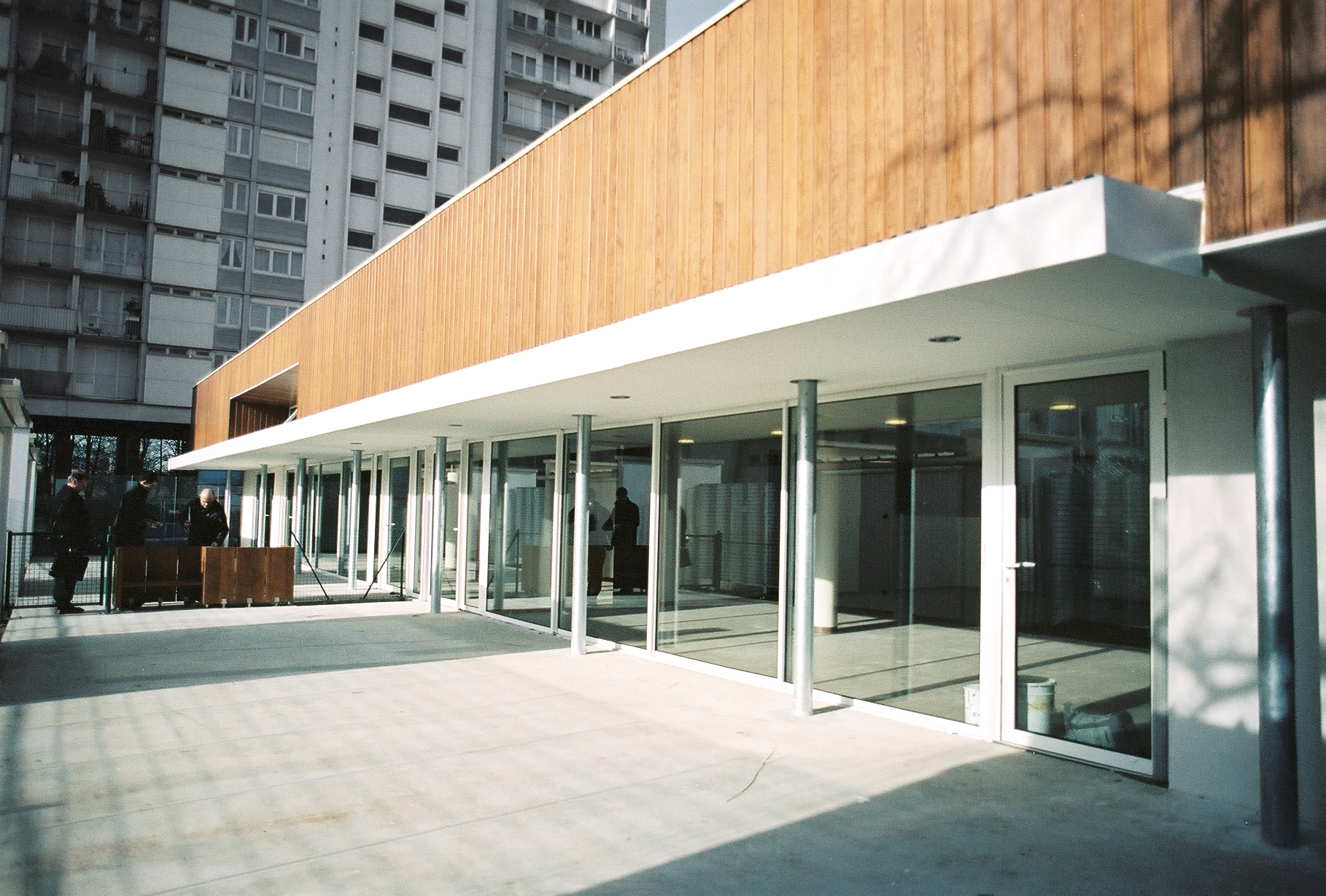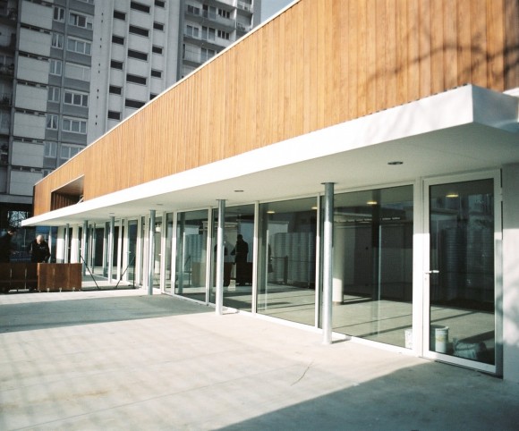 Dans le cadre d’une intervention à plusieurs phases, (occupation des rez-de-chaussée, dessin des espaces plantés) et à long terme sur un grand ensemble de logements, la reconversion d’une surface commerciale longtemps inoccupée, en halte-garderie et ludothèque a été l’occasion d’ouvrir cet ensemble bâti à un usage normal de la ville.