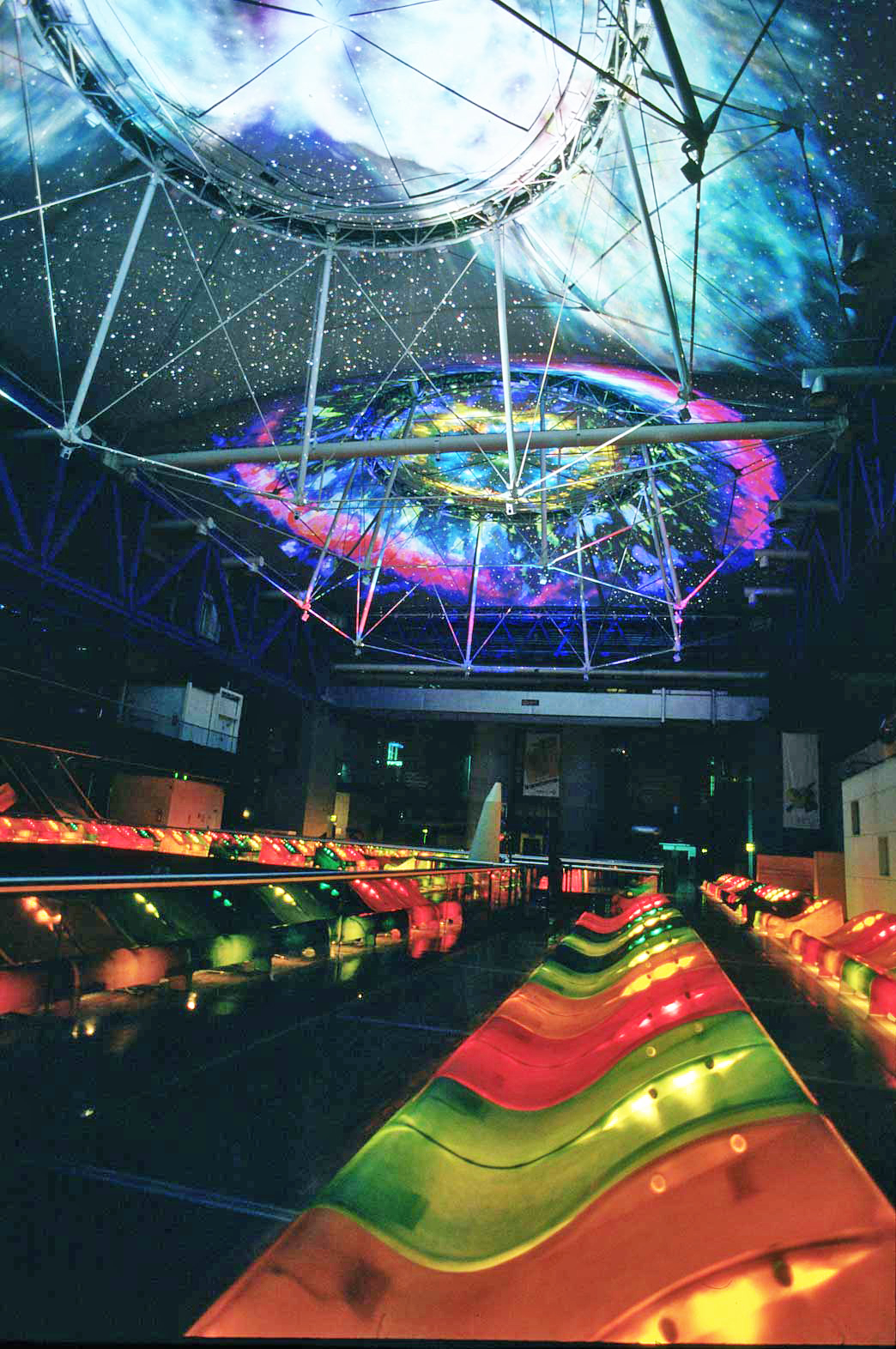 Comment rendre compte de l’immensité des espaces intersidéraux à l’intérieur d’un atrium couvert, qui se trouve être de plus un musée d’envergure nationale en activité, recevant un grand nombre de visiteurs.