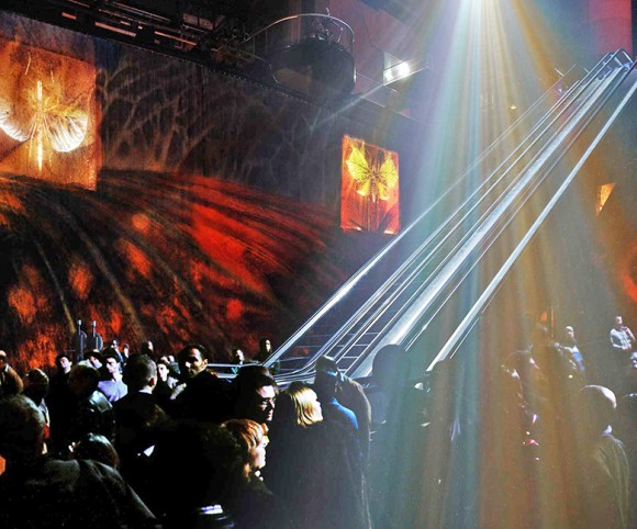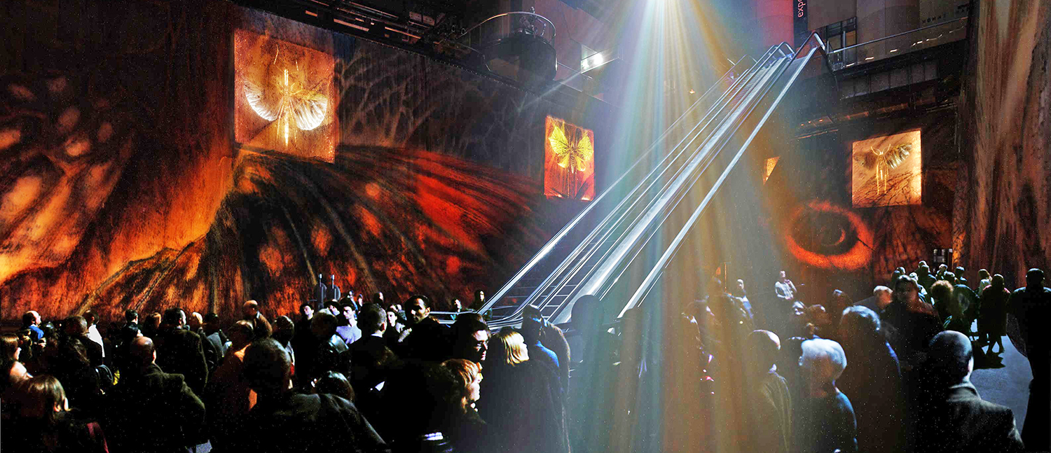 – dans un premier temps, réinventer et redéfinir les espaces avec des toiles peintes et des lumières dynamiques : le spectateur est dans l’image.